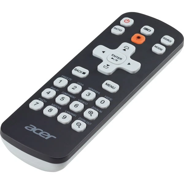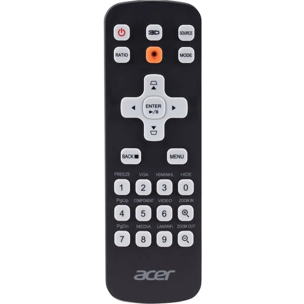 Mit der universellen Buisness Fernbedienung von acer kann man verschiedene Projektoren von acer steuern und dabei eine Reihe an nützlichen Funktionen aktivieren. Die Fernbedienung besitzt insgesamt 25 Tasten, die alle hintergrundbeleuchtet sind. Neben üblichen Tasten wie Quelle, Vor/Zurück und die Navigationstasten, besitzt die Fernbedienung eine Taste um die 3D-Funktion ein- oder auszuschalten, den Bildschirm einzufrieren oder auch direkt zu schwärzen. Als Besonderheit verfügt die Business Fernbedienung über einen integrierten Laserpointer.Art.-Nr.: 1490533
