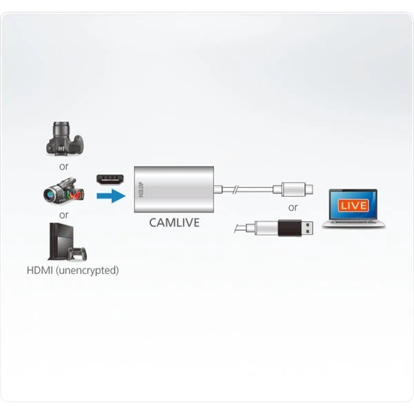 Entwickelt für Plug-and-Play ist CAMLIVE in der Lage, Ihre vorhandene Kamera sofort in eine Webcam umzuwandeln, so dass man eine Kamera problemlos für jede Anwendung und Plattform einsetzen können, wie z.B. Videobearbeitungssoftware, Open Broadcaster Software (OBS), Xsplit, Twitch, YouTube, Facebook und Skype. Egal, ob man spielt, rezensiert oder entpackt, der Live-Einsatz von CAMLIVE erfordert nur eine einfache Verbindung innerhalb von Sekunden.Art.-Nr.: 1535189