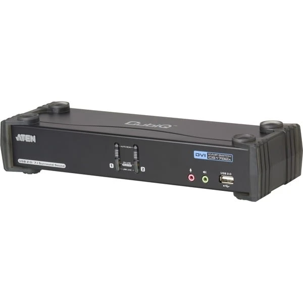 Der KVM-Switch CS1782A von ATEN ist die Lösung um zwei Computer mit nur einer Tastatur, einer Maus und einem Bildschirm zu steuern. Die Bedienung erfolgt sehr komfortabel per Hotkey an der Tastatur oder über Taster am Switch mit vier LEDs, die den aktuellen Status anzeigen. Die Computer werden jeweils mit einer USB-Buchse und einer DVI-Buchse mit dem CS1782A verbunden, der wiederrum zwei USB-Buchsen, und eine DVI-Buchse für die gemeinsame Tastatur, Maus und den Bildschirm bereitstellt. Zudem verfügt der CS1782 über 7.1-Audioanschlüsse und einen USB-Hub mit zwei Ports.Art.-Nr.: 938654