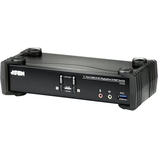 Der ATEN CS1922 2-Port USB 3.0 4K DisplayPort KVMP Switch bietet die neuesten Innovationen in der Desktop KVM Switching Technologie für den zunehmenden Bedarf an höherer Videoqualität und Übertragungsgeschwindigkeiten auf modernen Computern. Der ATEN CS1922 bietet eine hohe Leistung bei der Anzeige von 4K Auflösung, Ein USB Hub der nächsten Generation unterstützt Datenübertragungsraten von 5 Gbit/s und verbesserter benutzerfreundlicher Bedienung. Als KVM Switch ermöglicht der CS1922 den Nutzern den Zugriff auf zwei DisplayPort Computer über eine einzelne USB-Tastatur, USB-Maus und Monitor Konsole. Der CS1922 bietet drei komfortable Switching Methoden – mit Drucktasten an der Vorderseite, Maus oder Schnelltasten für den flexiblen Zugriff auf jeden Computer, der mit der Installation verbunden ist.Art.-Nr.: 1336641
