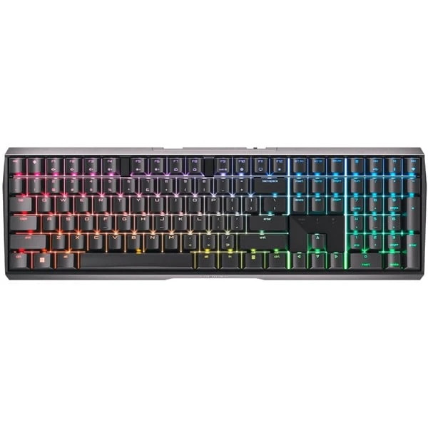 Die CHERRY MX 3.0S Wireless ist eine kabellose High-Performance Gaming-Tastatur mit individueller Auswahl zwischen Beleuchtungs-, Farb- und Switch-Varianten. Das hochwertige Keyboard mit stabilem Aluminium-Strangguss-Gehäuse kann dank der CHERRY Advanced-Wireless-Technologie sowohl kabellos per Bluetooth 5.2 oder 2,4 GHz Funk als auch per USB-A-auf-USB-C-Kabel verbunden werden. Im superschnellen Gaming-Mode mit einer Latenz von unter 1 ms lässt sich ihre Geschwindigkeit voll auskosten. Die originalen mechanischen CHERRY MX Gold-Crosspoint-Präzisionsschalter Made in Germany verfügen über alle relevanten Funktionen, die zum Sieg führen: Full-N-Key-Rollover, Anti-Ghosting und eine Windows-Tastensperre. Die eindrucksvolle RGB-Beleuchtung der MX 3.0S Wireless kann in über 16 Millionen Farben individualisiert werden und zahlreiche Farbspiele und Beleuchtungsmodi sind über die frei downloadbare Software einfach zu handhaben. Die robuste Verarbeitungsqualität im technischen Look zeigt sich am abnehmbaren Kable mit haltbarer, sicherer Steckverbindung, den runden Gummifüßen für einen sicheren Stand, der innovativen Verarbeitung komplett ohne Schrauben sowie den absolut abriebfesten Double-Shot-ABS-Tastenkappen.Art.-Nr.: 100022549