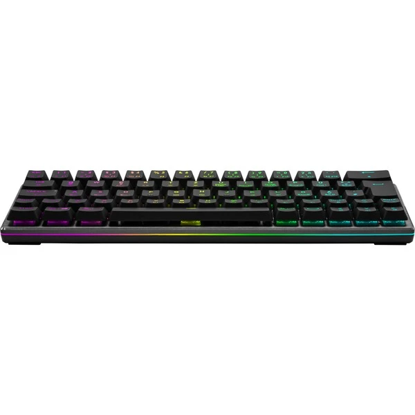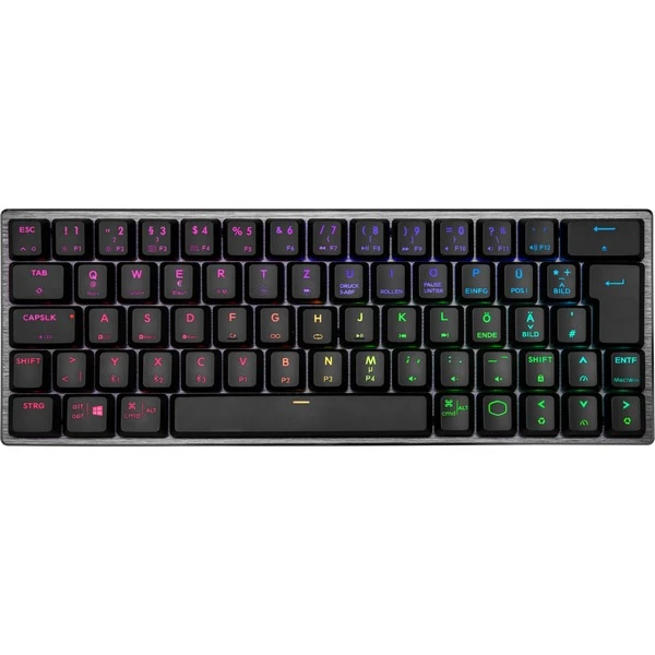 | Besonderheiten | Low Profile Mechanical Red Switches | Ergonomische Tastenkappen | Aluminum-Rahmen | Verstellbare Füße | Polling-Rate:125 Hz via Bluetooth, 1.000 Hz via USB-Kabel | On-thy-Fly-System | 32-bit ARM Cortex M0 | Ummanteltes, abnehmbares USB-C-Kabel | MasterPlus+ Software (nur über Windows) | ||