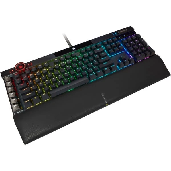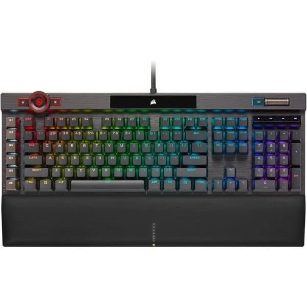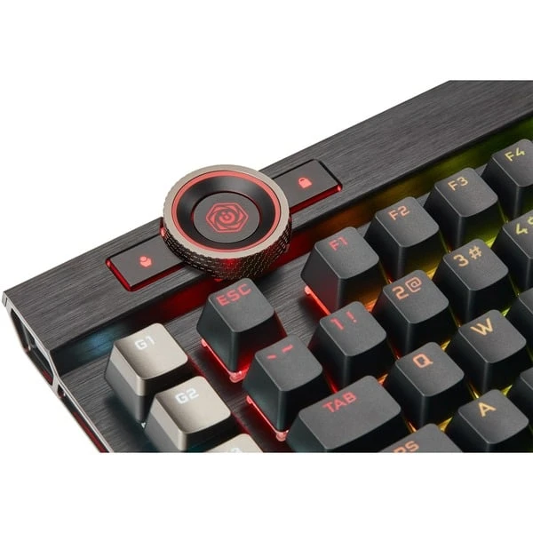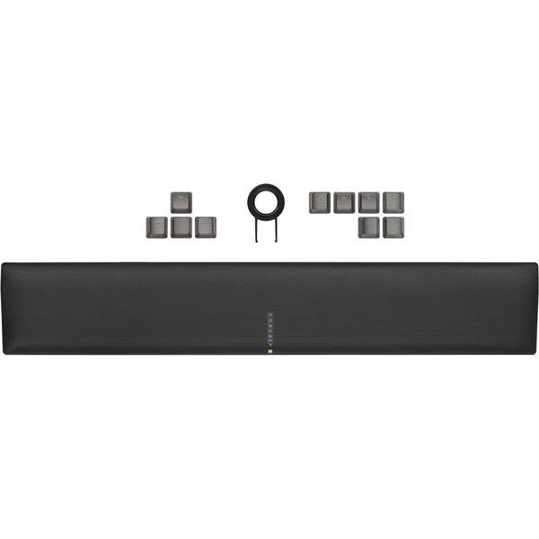 | Besonderheiten | Rahmen aus schwarz eloxiertem, gebürstetem Aluminium | Anpassbare Höhe (2 Neigungshöhen) | Abnehmbare Handballenauflage | Corsair AXON Hyper-Processing-Technologie (u.a. 4.000-Hyper-Polling) | Dynamische, mehrfarbige Hintergrundbeleuchtung (16,8 Millionen Farben) mit LightEdge und 44 Beleuchtungszonen | PBT-Double-Shot-Tastenkappen | 6 dedizierte Makrotasten mit Möglichkeit zur Integration in die Elgato Stream Deck-Software | Dedizierte Medientasten (Wiedergabe/Pause, Stopp, Nächster Track, Letzter Track, Stummschalten) und Lautstärkerad (Lautstärke erhöhen und verringern) | Windows-Sperrtaste | Full Key Rollover (NKRO) mit 100% Anti-Ghosting | Bis zu 100 Onboard-Profile | Corsair iCUE-Software | Multifunktional programmierbar | ||