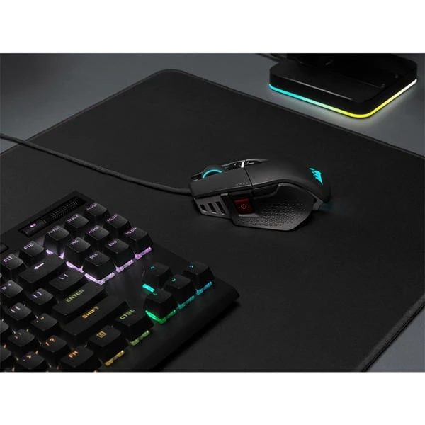 | Besonderheiten | Optimiert für FPS, MOBA, 8 programmierbare Tasten, anpassbares Gewichtssystem von 97 – 115 g, Quickstrike-Tasten, programmierbaren Kippgesten, 6-Achsen-Gyro- und Beschleunigungssensor, Corsair Axon Hyper-Processing-Technologie, Onboard-Speicher, Aluminium-Gehäuse | ||