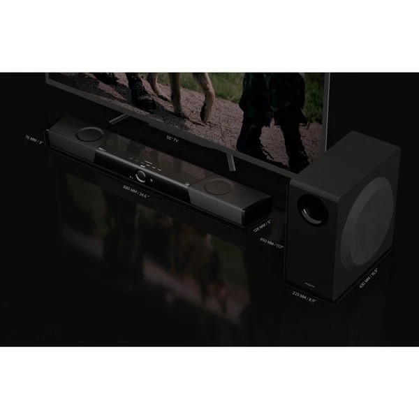 | Anschlüsse | 1x 3,5-mm-Klinkenbuchse, 1x 3,5-mm-Kopfhörerbuchse, 1x optischer Digitaleingang, 1x Stromanschluss, 1x Subwoofer-Cinchbuchse, 1x USB-A 2.0, 1x USB-C, 2x HDMI-Eingang, 1x HDMI-Ausgang | ||