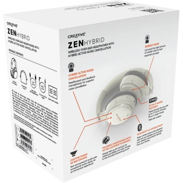 Mit hybrider aktiver Geräuschunterdrückung, die sowohl das Feedforward-als auch das Feedback-ANC-System übernimmt, und einem Umgebungsmodus, der genau die angemessene Menge an Umgebungsgeräuschen zulässt, damit Sie über die Ereignisse um Sie herum wachsam bleiben. Selbst bei eingeschaltetem ANC können kann man mit einer langen Akkulaufzeit von bis zu 27 Stunden rechnen. Die Over-Ear-Kopfhörer sind eine ideale Kombination aus Vielseitigkeit und Leistung- drahtlos oder kabelgebunden, im Freien oder drinnen -und mit einem geräuschunterdrückenden Mikrofon ausgestattet, das alle spontanen Anrufe bewältigen kann, wo immer man auch gerade ist. Der Creative Zen Hybrid wurde aus hochwertigen Materialien gefertigt, darunter ein verstärkter Stahlkern, 40-mm-Neodym-Treiber und eine physische Tastensteuerung am Kopfhörer selbst. Mit Creative Zen Hybrid findet man immer sein Zen.Art.-Nr.: 1863234