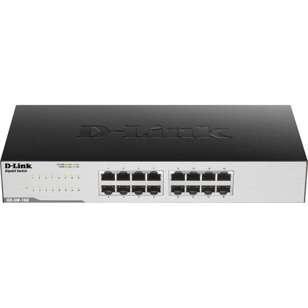 Der dlinkgo Unmanaged Gigabit-Switch D-Link GO-SW-16G mit 16 Ports ist eine wirtschaftliche Lösung für den SOHO-Bereich sowie für kleine und mittlere Unternehmen, die einen energieeffizienten Switch benötigen, mit dem sie die hohe Bandbreite von Gigabit Ethernet nutzen können. Bei dem GO-SW-16G steht die Geschwindigkeit von Gigabit Ethernet an allen Ports zur Verfügung – für ein echtes Hochgeschwindigkeitsnetzwerk. Damit profitiert man von schnelleren Datenübertragungen und Backups sowie von unterbrechungsfreien VoIP-Gesprächen und Multimedia-Streams. Heterogene Netzwerke mit einer Mischung aus älteren und neuen Geräten stellen kein Problem dar: Da jeder Port Ethernet-, Fast Ethernet- und Gigabit Ethernet-Verbindungen unterstützt, ist eine uneingeschränkte Rückwärtskompatibilität gewährleistet.Art.-Nr.: 1164117