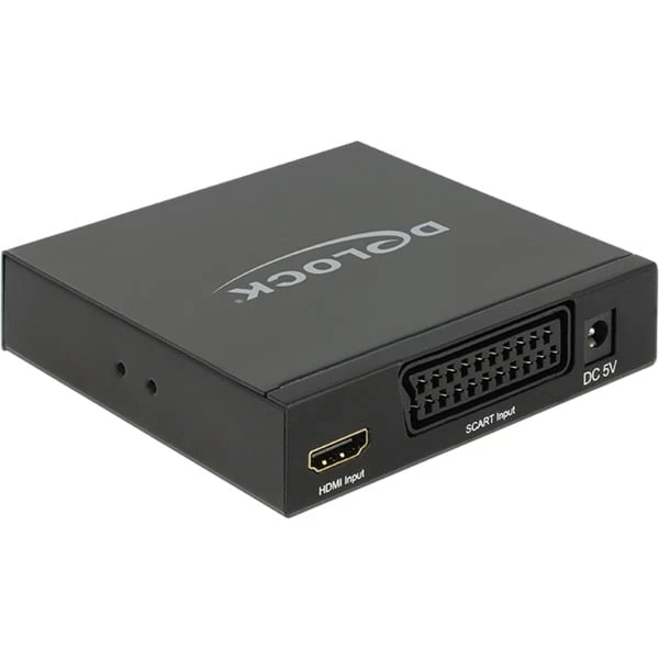 Der Delock A/V Konverter wandelt ein analoges SCART Video- und Audiosignal in ein digitales HDMI Signal um. So können z. B. ein Videorekorder oder eine Spielekonsole mit einem HDMI Monitor oder Full HD TV verbunden werden. Zusätzlich ist ein HDMI Eingang vorhanden, sodass der Konverter als Umschalter verwendet werden kann. Beide Eingänge werden über den integrierten Videoprozessor auf ein HDMI Ausgangssignal von 720p oder 1080p mit 50 oder 60 Hz skaliert. Das Audiosignal steht gleichzeitig am HDMI Ausgang, als digitales S/PDIF Signal und als analoges Stereosignal an der Klinkenbuchse zur Verfügung. Systemvoraussetzungen: Monitor oder TV mit HDMI Anschluss, AnschlusskabelArt.-Nr.: 1339452