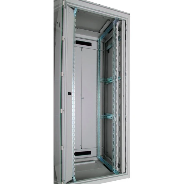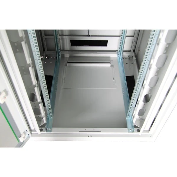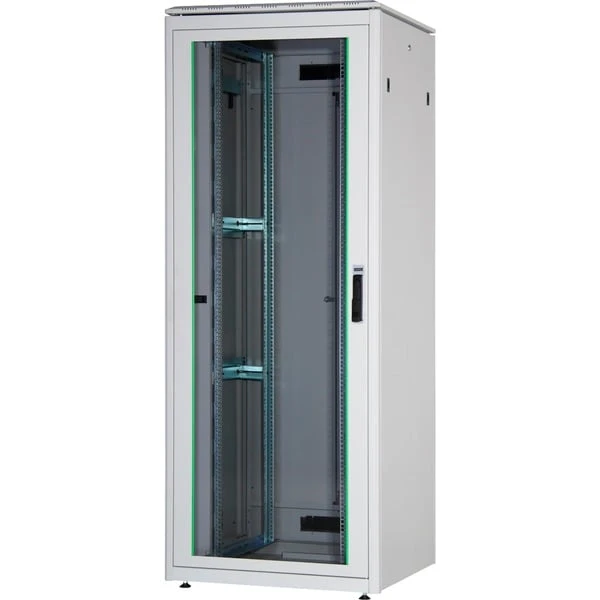 | Feature | 1,5 mm robustes Stahlblech mit hoher Belastbarkeit, pulverbeschichtet lichtgrau (RAL 7035); Stahlfronttür mit Sicherheitsglas und Schwenkhebelgriff, abschließbar; 120° Türöffnungswinkel, Front- und doppelflügelige Rücktür; Türanschlag einfach wechselbar, Dachbelüftungsvorrichtung zur Aufnahme von Lüfterblechen | ||