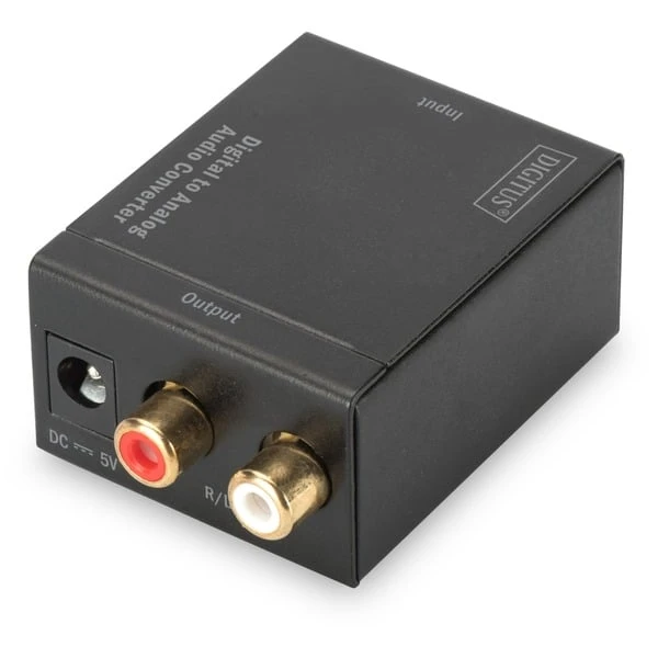 Der Konverter DS-40133 von Digitus wandelt ein digitales Audiosignal (Eingang Koaxial oder Toslink optisch) in ein analoges Signal (Ausgang Cinch Stereo) um. Durch die Umwandlung kann man moderne Wiedergabegeräte wie Fernseher, Mediaplayer oder DVD/Blue-ray Player auch mit einer analogen Stereoanlage über ein Cinch-Kabel verbinden. Das kompakte Metallgehäuse lässt sich dezent platzieren und sorgt für eine optimale Abschirmung.Art.-Nr.: 1504332