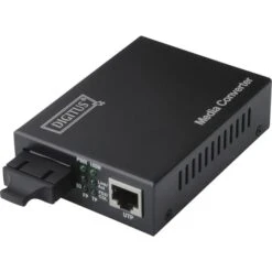 Der Digitus Fast Ethernet Medienkonverter RJ-45 auf SC-Duplex wandelt drahtbasierte 100Base-TX-Netzwerksignale in 100Base-FX-Glasfasersignale um. Dabei bietet er eine maximale Reichweite von bis zu 20 km. Die Wellenlänge liegt sowohl beim Senden als auch beim Empfangen bei 1310 nm. Als Standalone-Gerät mit externem Netzteil braucht der Fast Ethernet Medienkonverter RJ-45 auf SC-Duplex auch nicht in ein Rack eingebaut werden. Weiterhin sind automatische Kabelerkennung, Auto-Erkennung von Voll- und Halb-duplex sowie Diagnose-LEDs für die Status- und Aktivitätsüberwachung verfügbar. Der Fast Ethernet Medienkonverter RJ-45 auf SC-Duplex eignet sich für 9/125 µm Singlemode-Glasfaserkabel.Art.-Nr.: 1025498