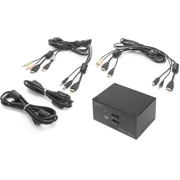 Der Digitus KVM-Switch DS-12860 ist ein günstiger 2-Port KVM-Switch mit automatischem Audioumschalter für den Desktopbereich. Der Anschluss des KVM erfolgt per USB (Tastatur / Maus), 2x 3,5mm Klinke (Audio Mic/Line) und Dual HDMI-Monitor über die zwei mitgelieferten Anschlusskabel sowie zwei weitere HDMI-Kabel an die Computer. Über den zusätzlichen USB-Port in der Front lassen sich zudem externe Datenträger, wie z.B. USB-Sticks, anschließen und verwalten.Art.-Nr.: 1805918