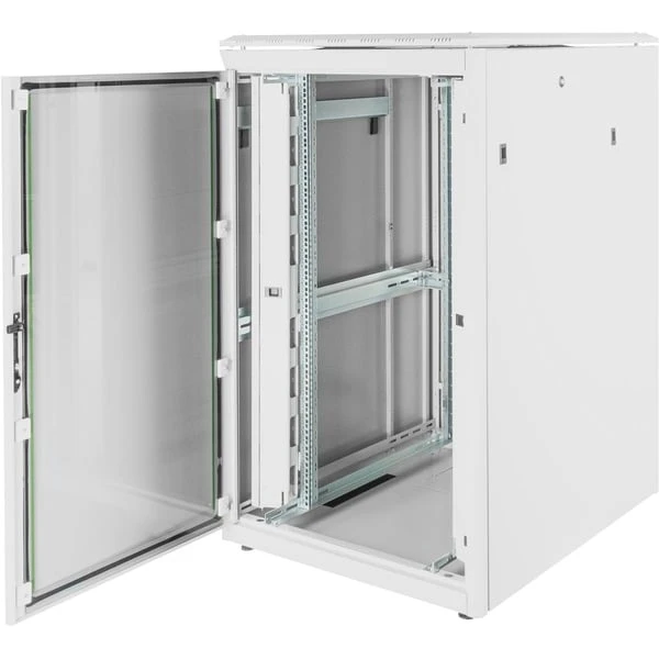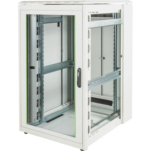 Die Netzwerkschrank Unique Serie wurde für Verkabelung und Netzwerkkomponenten entwickelt und produziert. Verschiedenste Optimierungen führen zu einer optimalen Leistung in Qualität und Mehrwert. Die Schränke sind benutzerfreundlich konzipiert und ästhetisch im Aussehen. Die Fronttür besteht aus einem kompletten Metallrahmen mit Sicherheitsglas. Der Türanschlagswechsel kann wahlweise von links auf rechts geändert werden. Der abschließbare Schwenkhebelgriff ist vorbereitet für die Aufnahme von Profilhalbzylindern (Adapter liegt bei). Alle Seitenteile sind abschließbar und können leicht abgenommen werden. Jeder Schrank beinhaltet galvanisierte 483 mm (19“)-Profilschienen, montiert vorne und hinten im Schrankinneren. Sie sind tiefenverstellbar und besitzen eine Markierung der jeweiligen Höheneinheit. Die vertikalen Kabelführungskanäle sind neben den vorderen Profilschienen verbaut (bei Schränken ab 800 mm Breite). Sie bieten eine einfache Führung von Patch- und Installationskabeln. Das Dach ist vorbereitet zur Aufnahme einer Lüftereinheit. Die komplett montierten 483 mm (19“)-Schränke sind in verschiedenen Höheneinheiten von 22HE bis zu 47HE und einer Breite von 600 oder 800 mm und einer Tiefe von 600, 800 oder 1000 mm erhältlich.Art.-Nr.: 1805707