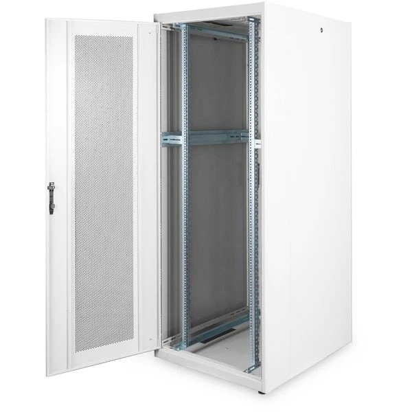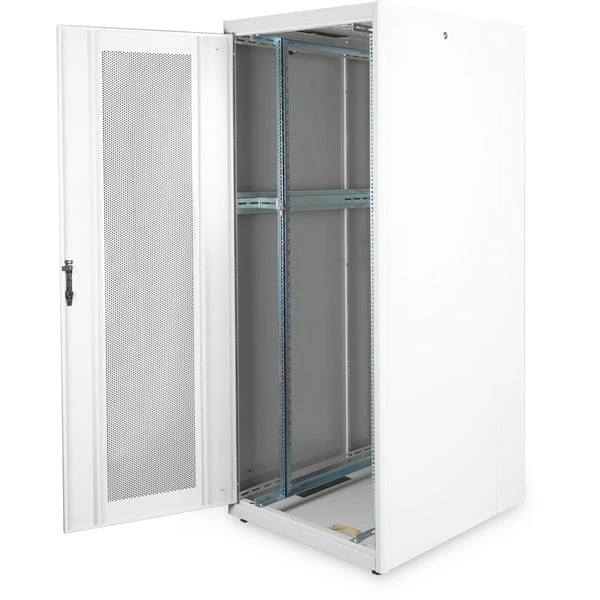 Die Schränke der Dynamic Basic wurden für den benutzerfreundlichen Einbau von aktiven- und passiven Netzwerkkomponenten einhergehend mit einer sauberen Verkabelung entwickelt. Jeder Schrank wird aus bis zu 1,5 mm starkem Stahlblech gefertigt und sorgt auf Grund von spezieller Blechbiegetechnik als robuste Stahlkonstruktion für eine sehr gute Stabilität. Die Farbgebung erfolgt durch Pulverbeschichtung in den Farben Grau (RAL 7035) und Schwarz (RAL 9005). Im Sonderfall kann eine Demontage der Schränke erfolgen, um auch schwer zugängliche Aufstellungsorte zu erreichen. Die Türen lassen sich leicht demontieren, ein Türanschlagswechsel kann vorgenommen werden. Des weiteren ist das Dach vorbereitet für die Aufnahme eines Lüftermoduls zur aktiven Entlüftung. Die Schränke beinhalten 2 Paare (4 Stück) montierte 483 mm (19“)-Profilschienen im Inneren. Diese sind galvanisiert und mit einer Markierung der Höheneinheit versehen (zählbar in beide Richtungen). Sie lassen sich in der Tiefe verstellen und sind zusätzlich mit Tiefenstreben im Schrank verbunden um so einen intensiven Ausbau mit 483 mm (19“)-Komponenten zu ermöglichen. Ein wichtiger Aspekt bei der Installation ist das Kabelmanagement. Jeder Schrank ist ausgestattet mit einem ausgestanzten Kabeleinlass mit Abdeckplatte im Boden. Der Boden bei Schränken ab 800 mm Breite wird zusätzlich erweitert mit ausgestanzten Kabeleinlässen mit Kunststoffabdeckung links und rechts. Im Dach befinden sich diese 1x bei Schränken mit 600 mm Breite und 3x ab 800 mm Breite. Ein umfangreich erhältliches Portfolio an Zubehör für die Kabelrangierung, Fachböden, etc. hilft viele Anforderungen der täglichen Praxis zu erfüllen.Art.-Nr.: 1810485