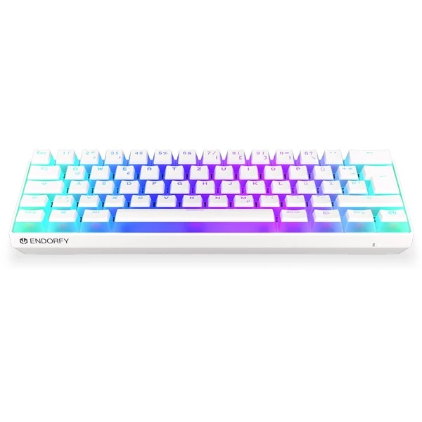 Die ENDORFY Thock Compact Wireless Pudding Onyx White Gaming-Tastaturen hat trotz ihrer kleinen Größe großes Potential. Sie nimmt nicht viel Platz ein, sodass man sich z.B. noch einen Kopfhörerständer auf den Schreibtisch stellen kann. Die Tastatur lässt sich ohne Verzögerung über Bluetooth oder 2.4 GHz mit Computer, Tablet oder Smartphone verbinden – oder einfach über das beiliegende USB-Kabel. Das Gehäuse der Thock Compact Wireless Pudding Onyx White ist mit einer Aluminium-Oberseite verstärkt und die Tasten sind mit hochwertigen PBT-Tastenkappen ausgestattet, die dank der Double Shot-Technologie besonders widerstandsfähig sind und auf ihren Einsatz im Kampf warten. Die ultra-robusten mechanischen Kailh BOX Schalter bieten eine Lebensdauer von 70 Millionen Klicks und können dank Hot-Swap-Technologie ganz einfach durch jeden anderen 3- oder 5-poligen Schalter ausgetauscht werden. Die Thock Compact Wireless Pudding Onyx White bezaubert mit einer atemberaubenden RGB-Beleuchtung, die dank der Pudding Keycaps noch eindrucksvoller ist, und bietet jede menge Komfort beim Spielen dank höhenverstellbarer Füße und integriertem Kabelmanagement.Art.-Nr.: 1901923