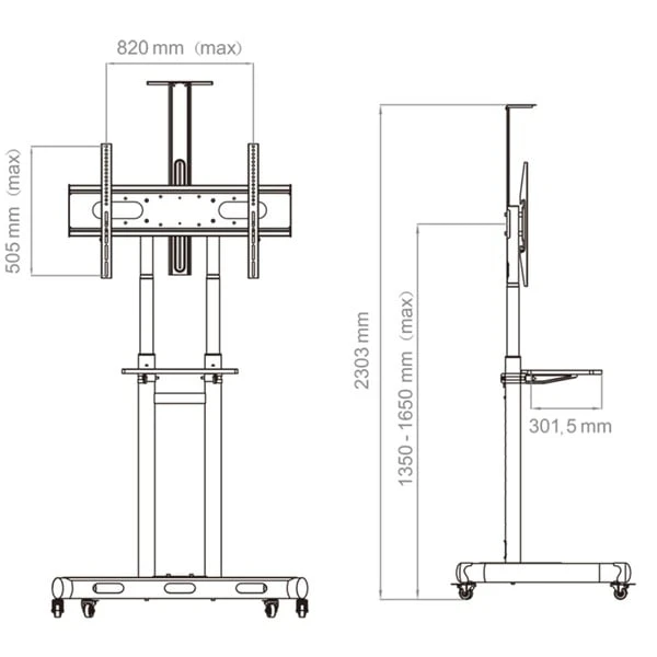 Der HP Twin Stand HD ist ein Standsystem welches sich für Bildschirme mit einer Größe von 140 – 213 cm (55 – 84“) eignet. Die VESA-Aufnahme kann bis max. VESA 800 x 500 mm bestückt werden. Die Bildschirmmontage kann dabei wahlweise in Landscape- oder Portraitausrichtung erfolgen. Die Höhe des Bildschirms ist über Raststufen mit Federbolzen entlang der Säulen zwischen min. 1350 und max. 1650 mm variabel.Art.-Nr.: 1821003