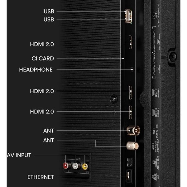 | Anschlüsse | 3x HDMI-Eingang, 1x Kopfhörer-Ausgang, 2x USB-A-2.0, 1x RJ 45, 1x CI+, 1x Optisch-Out | ||