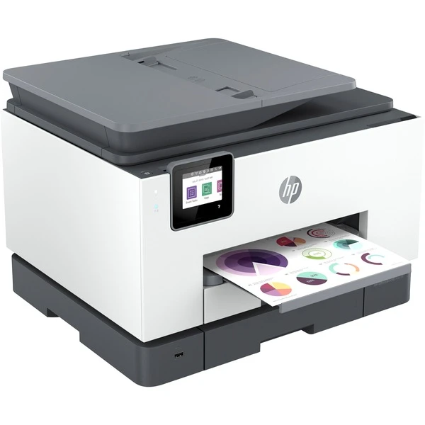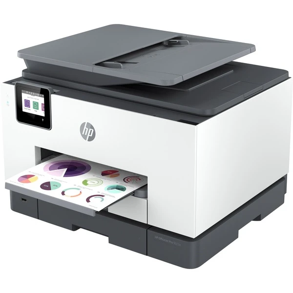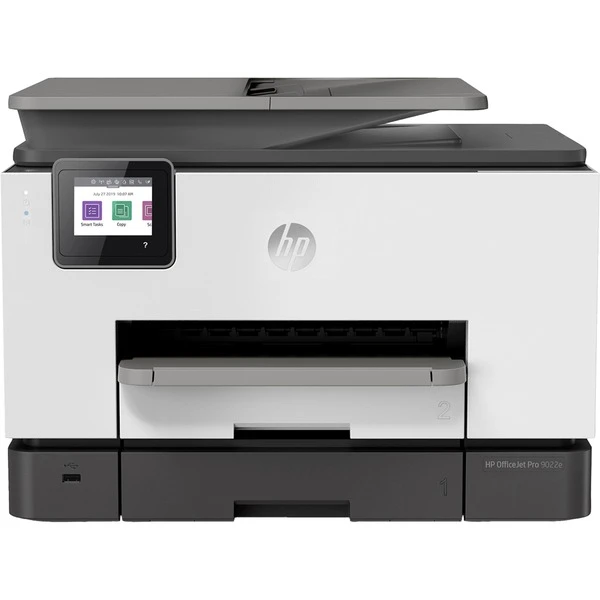Stilvolles Design, überzeugende Funktionalität: Der OfficeJet Pro 9022e von HP ist ein flexibler 4-in-1-Multifunktionsdrucker, der neben einer Tintenstrahl-Druckfunktion auch über einen Kopierer, einen Scanner sowie ein Faxgerät verfügt. Bis zu 39 Seiten pro Minute (Entwurfsmodus) gibt dieses kompakt gebaute Gerät, das über einen Touchscreen an der Vorderseite bedient wird, bei Druck von Schwarzweiß-Dokumenten aus. Darüber hinaus verfügt der OfficeJet Pro 9022e über eine automatische Duplexeinheit für einfachen beidseitigen Druck und einen ebenfalls duplexfähigen Papiereinzug an der Oberseite, über den Vorlagen zum Kopieren und Scannen eingegeben werden können. Der OfficeJet Pro 9022e hat zwei Papierfächer mit jeweils 250 Blatt Kapazität. Dabei hat das Gerät Schnittstellen für LAN, WLAN und WiFi direct printing, womit der Direktdruck von Mobilgeräten mit iOS und Android möglich wird. Der OfficeJet Pro 9022e ist eine smarte Lösung für den Heimanwender oder kleine Büros. Mit HP Instant Ink ist bei Bedarf immer rechtzeitig Tinte oder Toner zur Hand. Die ersten Druckerpatronen oder Tonerkartuschen werden nach der Registrierung auf der HP-Homepage geliefert.Art.-Nr.: 1750072
