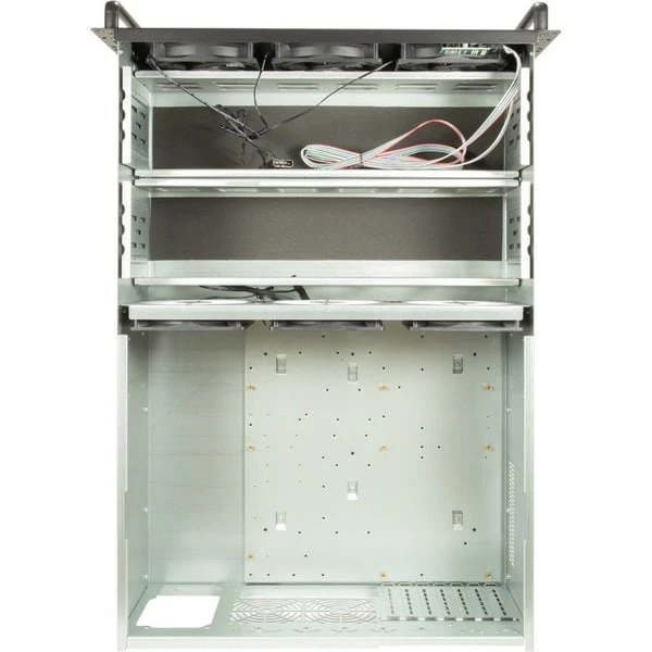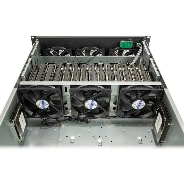 Das 4F28 Mining ist ein 19″-Rackgehäuse mit 4HE und einer Einbautiefe von 650 mm. Neben der Unterbringung eines Motherboards mit maximal 12″ x 13″ bietet es Platz für bis zu 28x 3,5″ HDD und bis zu 4x 2,5″ oder 6x 2,5″ SSD. Dank seiner robusten Bauweise bietet das Gehäuse den nötigen Halt für Ihre empfindliche Hardware. Zur optimalen Kühlung der Hardware sind sechs leistungsstarke 120-mm-Gehäuselüfter vorinstalliert, drei davon in der Front und drei weitere in der Mittelschiene. Zwei USB 2.0 Frontanschlüsse runden das Angebot ab.Art.-Nr.: 1778205
