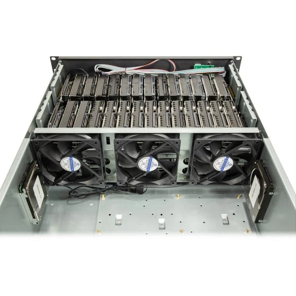 | Weitere Informationen | Einbauschächte intern: 28x 3,5″ HDD und bis zu 4x 2,5″ oder 6x 2,5″ SSD | ||