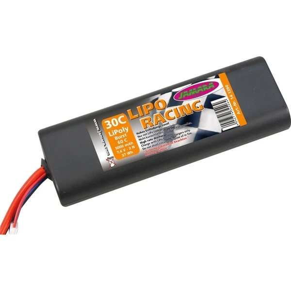 Der Jamara Akkupack LiPo-Racing 7,4V 5000mAh 2 N 30C ist ein Ersatzakku für den 6 Zellen NiMh Akku. Der Akkupack liefert 7,4 Volt Spannung.Art.-Nr.: 1398657
