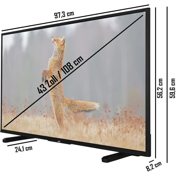 Der JVC LT-43VU2255 ist ein hochwertiger LED-Fernseher, der mit seiner UltraHD Auflösung (3.840 x 2.160 Pixel) für ein gestochen scharfer Bild sorgt und einer viermal höhere Auflösung gegenüber FullHD bietet. Der SmartTV ist mit WLAN ausgestattet und ermöglicht damit Zugriff auf zahlreiche VoD-Dienste, Apps sowie einen Browser. Über Alexa kann man zudem Smart Home Geräte steuern oder einfache Fragen stellen sowie Befehle ausführen. Dolby Atmos und Dolby Vision machen Bild und Ton noch realistischer indem sie laufend zum Inhalt angepasst und optimiert werden.Art.-Nr.: 1898643