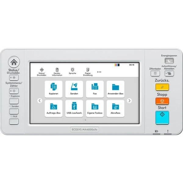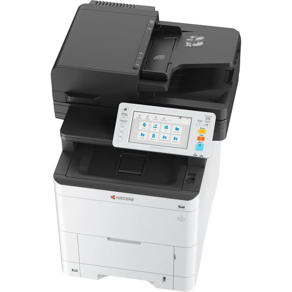 | Feature | Duplexeinheit (Drucken), Apple AirPrint, Mopria-zertifiziert, Prozessor: ARM Cortex-A9 Dual Core (1,2 GHz). Druckfunktionen: Prüfen und Halten (Proof and hold), N-Up-Printing (Druck mehrerer Seiten auf einem Blatt), Internet-Printing IPP 1.0, E-Mail-Printing, WSD Print, Tonersparmodus, AirPrint, Mopria, Kyocera Print Service Plugin, Microsoft Universal Print. Sicherheit: Vertraulicher Druck“ mit Pin-Code-Abfrage, verschlüsselter PDF-Direktdruck, Sicherheitswasserzeichen, Einschränkung des Nutzerkreises durch Benutzer-Loginverwaltung, IP-Filter, Port-Nummernbeschränkung, integriertes Kostenstellenmanagement für bis zu 100 Kostenstellen. Die Papierablage verfügt über einen „Ablage voll“-Sensor. Einstellbare Mediengrößen: 70 mm x 140 mm – 216 x 356 mm (Universalzufuhr), 105 mm x 140 mm – 216 mm x 356 mm (Papierkassette), 105 mm x 148 mm – 216 mm x 356 mm (Originaleinzug), 210 mm x 488 mm – 216 mm x 1.220 mm (Banner), 105 mm x 148 mm – 216 mm x 356 mm (Duplexdruck). Unterstützte Mediengewichte: 50 – 120 g/m² (Originaleinzug), 60 – 220 g/m² (Universalzufuhr und Papierkassette), 136 – 163 g/m² (Banner), 60 – 163 g/m² (Duplexdruck). Kopierfunktionen: Mehrfachkopien aus dem Speicher, elektronisches Sortieren, Erkennung von Originalen mit geknickter Ecke, „ Leere Seiten auslassen“, Duplex-Kopie, „Durchscheinen vermeiden“, Randlöschung. Scanfunktionen: Scan to E-Mail, Scan to FTP, Scan to PC (SMB), TWAIN, WIA, WSD-Scan, Scan to USB-Host, eSCL-Unterstützung (AirPrint, Mopria Scan, Chrome OS). Unterstützte Dateitypen: PDF, PDF/A-1a/b, PDF/A-2a/b/u, hoch komprimiertes PDF, verschlüsseltes PDF, JPEG, TIFF, (Open) XPS. Dateitrennung, Scan-Vorschau, Erkennung von Originalen mit geknickter Ecke, „Leere Seiten auslassen“, „Durchscheinen vermeiden“, Randlöschung, Mehrfach-Scan, Banner-Scan (max. 300 dpi, SW, max. 216 mm x 915 mm). Faxfunktionen: Netzwerkfax, Speicherempfang, zeitversetztes Senden, Rundsenden, Faxabruf, Duplex-Empfang/Senden, Mehrfach-Scan, Faxweiterleitung an anderes Fax-Gerät, E-Mail-Adresse oder Ordner (SMB oder FTP). | ||