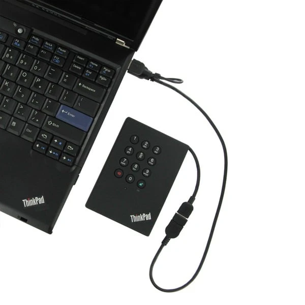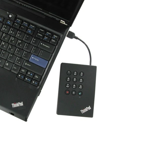 Als für den Mobileinsatz optimierter Datencontainer verbindet die externe ThinkPad USB 3.0 500 GB Sicherheitsfestplatte ultimativen Datenschutz mit Handlichkeit. 256-Bit-AES-Verschlüsselung (Advanced Encryption Standard) gewährleistet die Sicherheit der gespeicherten Inhalte. Das Gehäuse ist handlich-leicht und verfügt über eine eigene Stromversorgung. Über das hochwertige integrierte Tastenfeld lässt sich ein 8- bis 16-stelliges Kennwort eingeben für eine Administrator-ID und eine Benutzer-ID, falls gewünscht. Angeschlossen wird die Sicherheitsfestplatte wahlweise über USB 2.0 oder USB 3.2 oder mit dem in einem integrierten Staufach untergebrachten USB 3.2-Kabel.Art.-Nr.: 1590182