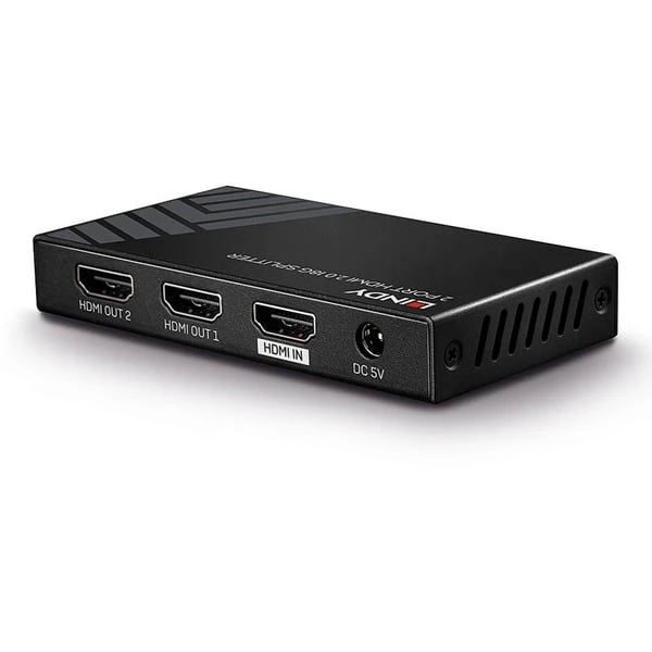 Der 2 Port HDMI 18G Splitter 38235 von Lindy ist ein kompaktes, leistungsstarkes Gerät zum Verteilen des HDMI 2.0 18G Signals einer Quelle auf zwei Displays. Mit Auflösungen bis 4K 3.840 x 2.160 @60Hz 4:4:4 8Bit eignet sich der Splitter perfekt für auffallende Digital Signage-Systeme im Einzelhandel, zur Anzeige hochwertiger Videos in verschiedenen Räumen oder z.B. in Sportbars. Der Splitter kann außerdem über drei weitere Ebenen kaskadiert werden, das eignet sich perfekt für Anzeigen auf mehreren Displays z.B.in Flughäfen, auf Bahnhöfen oder an der Börse. Die zusätzliche Unterstützung von High-Dynamic Range sorgt dafür, dass Videoinhalte mit höherer Helligkeit, verbessertem Kontrast und breiterem Farbspektrum für naturgetreue Farbwiedergabe gesehen werden können. HDCP 2.2 Unterstützung gewährleistet, dass es beim Anschluss an Quellgeräte wie Set-Top-Boxen, Blu-ray Player oder 4K HDR Mediaplayer keine Probleme mit der Vielzahl von 4K-Inhalten gibt. Der intelligente Schalter für das EDID Management sorgt für maximale Kompatibilität mit dem Display.Art.-Nr.: 1910007