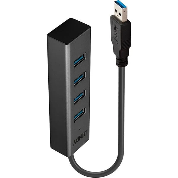Der Lindy 4 Port USB 3.0 Hub ermöglicht den Anschluss von vier USB-Peripheriegeräten Typ A an einem Computer mit USB Port Typ A. Der Hub unterstützt Datenübertragungsraten bis 5 Gbit/s und ist abwärts kompatibel mit USB 2.0 und 1.1. Art.-Nr.: 1819239