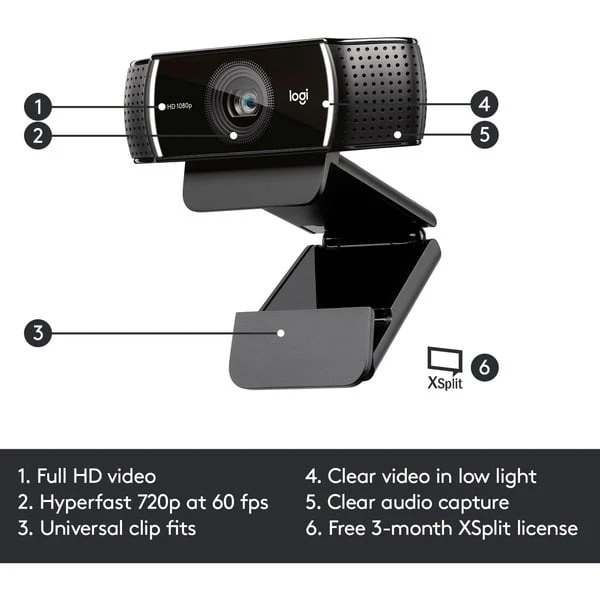 Die Logitech C922 bietet Streaming und Aufzeichnung lebendiger, realistischer HD-Videoclips in 1080p, die jedes noch so kleine Detail festhalten. Schnelles, reibungsloses Hochladen dank fortschrittlicher H.264-Komprimierung, die sich mit einer geringeren Netzwerkbandbreite begnügt. Klare Videos streamen – auch bei Dämmerlicht Automatische Anpassung an flimmerndes Licht durch Lampen oder die Bildwiederholrate mehrerer Computermonitore. Zwei omnidirektionale Mikrofone sorgen bei Streaming und Videoaufzeichnung für einen klaren, aussetzerfreien Sound. Vollständig einstellbares Tischstativ mit schwenkbarer Halterung. Auf 18,5 cm ausziehbar.Art.-Nr.: 1301784
