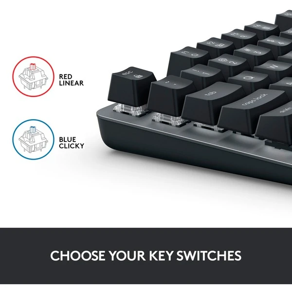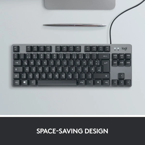 Die mechanische Tastatur K835 TKL von Logitech vereint präzise Mechanik mit einem kompakten, modernen Aluminiumdesign ohne Nummernblock, das jede Menge Platz auf dem Schreibtisch spart. Ihre GX Blue Switches bieten ein taktiles Tippen mit fließendem Feedback und leichten Anschlägen, die bis zu 50 Mio. Klicks getestet wurden. Die K835 TKL verfügt zudem über zwölf FN-Tasten mit dualer Funktion, welche die Nutzung von Shortcuts und den Zugriff auf Medien vereinfacht, und die verstellbare Neigung sorgt für den nötigen Komfort im Arbeitsalltag.Art.-Nr.: 1708251