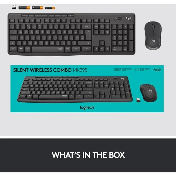 Das Logitech MK295 ist ein leises, kabelloses Desktop-Set aus Tastatur und Maus mit SilentTouch-Technologie, die bei gleichem, vertrautem Tipp- und Klickgefühl störende Geräusche um über 90 % reduziert. Die starke, zuverlässige kabellose 2,4-GHz-Verbindung ermöglicht das Arbeiten in bis zu 10 m Entfernung. Die Tastatur bietet einen Nummernblock und acht praktische Shortcut-Tasten für eine leichtere Steuerung und effizientere Dateneingabe. Die Maus ermöglicht bequemes Klicken dank der ergonomisch gestalteten Form. Sie funktioniert auf vielen Oberflächen und sorgt für geschmeidige Bewegungen durch die fortschrittliche optische Spurführung. Das Logitech MK295 Desktop-Set ist mit Chrome OS und Windows auf Laptop und PC kompatibel und lässt sich dank Plug&Play direkt in Betrieb nehmen.Art.-Nr.: 1673456