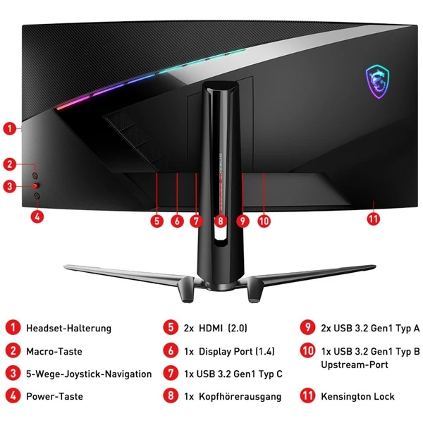 Der MSI ARTYMIS 343CQRDE richtet sich an Gamer, die sich der ultimativen Immersion hingeben wollen: Mit seiner 86 cm (34″) Bildschirmdiagonale und der starken 1000R-Krümmung lässt der Curved-Monitor im 21:9-Format den Nutzer direkt ins Spielgeschehen eintauchen. Die hohe UWQHD-Auflösung (3.440 x 1.440 Pixel) sorgt für ein kristallklares Bild, während durch die HDR 400-Technologie Lichtverhältnisse noch realistischer wirken. Eine Bildwiederholungsfrequenz von 165Hz und die blitzschnelle Reaktionszeit von 1 ms sorgen zusammen mit der FreeSync Premium-Technologie für eine schlierenfreie und absolut präzise Bildwiedergabe auf Profiniveau. Mit dem Console-Mode kommen auch Konsolenliebhaber voll auf ihre Kosten: Der Modus ermöglicht die Wiedergabe von Spielen in QHD-Auflösung. Dank des HDMI CEC-Profils lässt sich der Monitor außerdem mit Controllern verbinden und über diese einschalten. Auch auf Komfort und Ergonomie wird bei dem ARTYMIS besonderer Wert gelegt: Der Monitor lässt sich präzise in Höhe und Neigung verstellen und kann so auf die individuellen Nutzerbedürfnisse angepasst werden. Eine praktische Halterung am Monitor ermöglicht das mühelose Verstauen von Headsets, während das praktische Mouse-Bungee für maximalen Bewegungsfreiraum beim Gaming mit kabelgebunden Mäusen sorgt. Durch sein schlankes, rahmenloses Design und die synchronisierbare Mystic Light-Beleuchtung ist der MSI ARTYMIS 343CQRDE ein echter Eye-Catcher in jedem Gaming-Setup.Art.-Nr.: 1730187