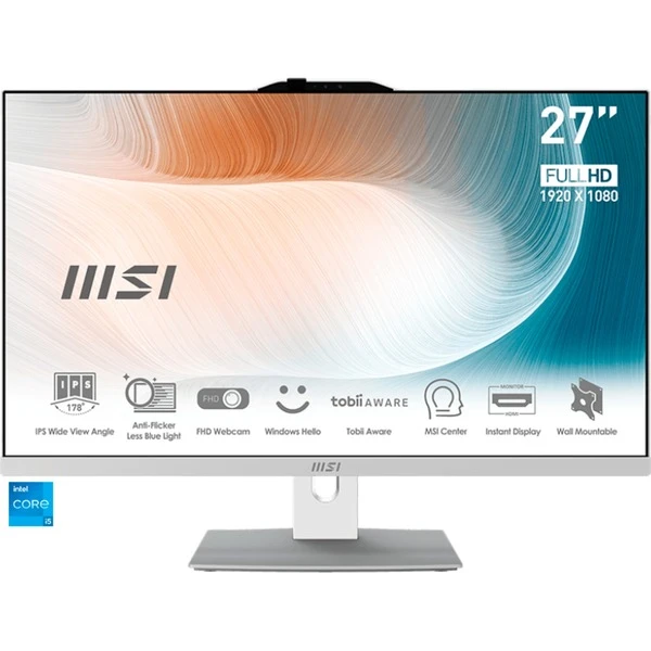 Der MSI Modern AM272P 12M-017DE All-in-One-PC sorgt für mehr Platz auf dem Schreibtisch und sieht dabei professionell und elegant aus. Das 68,58 cm (27″) große IPS-Panel-Display mit Full-HD-Auflösung (1920×1080) ermöglicht klare Videogespräche sowie gut lesbare Texte. Durch die MSI Instant-Display-Technologie lässt sich das Gerät als Monitor verwenden, ohne dafür das System hochfahren zu müssen. Der Intel® Core™ i5-1240P Prozessor sorgt in Kombination mit 8 GB DDR4-Arbeitsspeicher für eine zuverlässige Leistung. Wärmemodule auf Serverniveau sichern einen leisen und stabilen Betrieb bei einer längeren Lebensdauer. Eine 512 GB große M.2 PCIe SSD bietet genügend Platz zum Speichern. Sechs USB-Anschlüsse, jeweils ein HDMI- und VGA-Ausgang sowie Bluetooth 5.2 ermöglichen verschiedene Verbindungsoptionen für Peripherie und neben Gigabit-LAN ist der Modern AM272P auch über Wi-Fi 6 netzwerkfähig.Art.-Nr.: 1902151