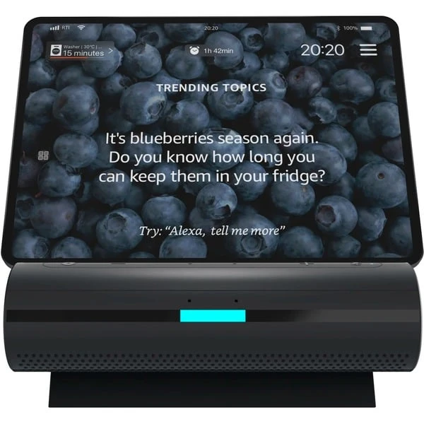 Damit es bei der Zubereitung oder dem Kochen von Speisen noch komfortabler wird, kann ein Smartphone oder Tablet in das Smart Kitchen Dock eingelegt werden um die Küche noch raffinierter zu machen. Das Smart Kitchen Dock wird zur smarten Schaltzentrale und vernetzt dabei Smartphone, Tablet, Alexa und das Dock selbst. Auf Zuruf kann man Aktionen ausführen, die Musik steuern, nach Rezepten suchen oder Fragen zu Speisen stellen. Das Smart Kitchen Dock ist nach IP43 geschützt, lässt sich per Bluetooth/WLAN steuern und kann das verbundene Gerät via USB aufladen. Um alle Aktionen hören zu können, ist das Smart Kitchen Dock mit 12 Watt starken Lautsprechern ausgestattet.Art.-Nr.: 1843598