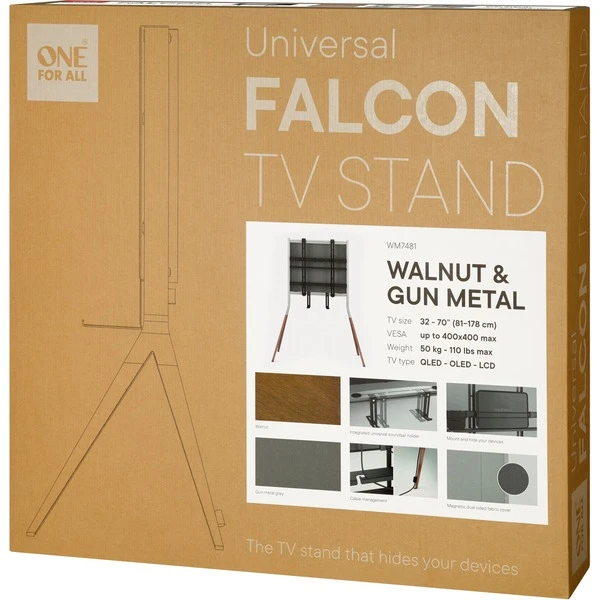 Der One for all Falcon Universal TV Stand eignet sich für Fernseher mit einer Diagonale zwischen 80 – 177,8 cm (32 – 70″) sowie einem maximalen Gewicht von 50 kg. Die eleganten Standfüße der Halterung beinhalten eine Kabelführung um das optische Erscheinungsbild nicht zu unterbrechen, gleichzeitig werden diese ordentlich verstaut. Durch das intelligente und elegante Design können neben dem Fernseher auch Streaming-Boxen oder andere Mediaplayer optimal abgelegt werden.Art.-Nr.: 1645999