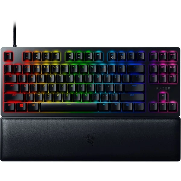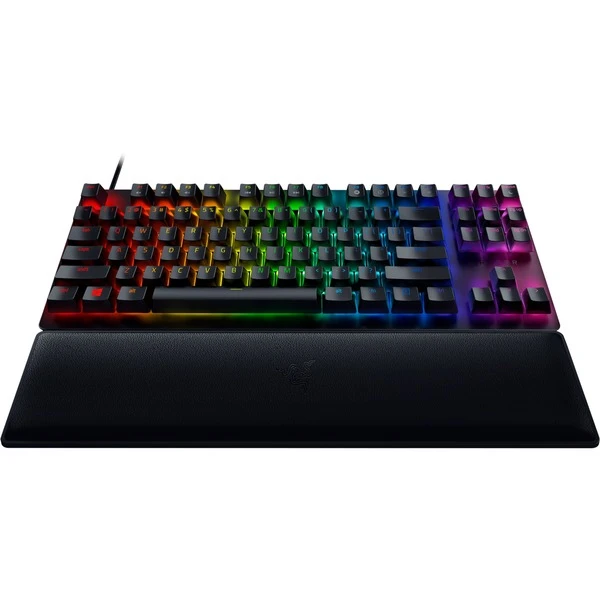 Die Razer Huntsman V2 TKL ist eine praktisch latenzfreie optische Gaming-Tastatur ohne Ziffernblock für konkurrenzlose Geschwindigkeit. Die linearen optischen Switches von Razer der 2. Generation sorgen für blitzschnelles, sanftes und lautloses Auslösen. Weiter verbesserte Schalldämpfer ermöglichen ein noch leiseres Tippen, und die weichen, konsistenten Switches haben nun dank der Razer HyperPolling-Technologie eine Abtastrate von echten 8.000 Hz für praktisch latenzfreie Eingaben. Die PBT-Tastenkappen werden aufgrund des Doubleshot-Gussverfahrens mit der Zeit auch nicht blank und die Beschriftung wird niemals verblassen oder sich abnutzen. Für einen noch besseren Sound beim Tippen hat die Huntsman V2 TKL in ihrem Gehäuse eine Schicht Spezialschaumstoff, der alle metallischen Geräusche absorbiert, die beim Drücken der Tasten auftreten können. Die gepolsterte Handballenauflage aus Kunstleder richtet sich perfekt an der Tastatur aus und entlastet die Handgelenke, damit auch bei längeren Gaming-Sessions keine Ermüdungserscheinungen auftreten. Der integrierte Hybrid-Speicher und Cloud-Speicher ermöglicht sofortigen Zugriff auf persönliche Einstellungen – immer und überall. Und dank der Razer Hypershift-Technologie lassen sich doppelt so viele Tasten programmieren. Darüber hinaus kann die Razer Chroma RGB-Beleuchtung der Huntsman V2 TKL per Chroma Studio noch mehr erweitert und die Beleuchtungseffekte mit allen Geräten, die Razer Synapse 3 unterstützen, synchronisiert werden.Art.-Nr.: 1783114