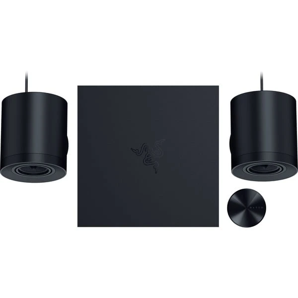 Mit den Razer Nommo V2 Pro setzt man alles auf den Sieg – mit optimaler Audiounterstützung. Das Nommo V2 Pro Set besteht aus den beiden Satelliten-Lautsprechern mit je einem 3.2″ Full-Range Treiber sowie dem kraftvollen Subwoofer und einem 5.5″ Treiber. So klingt Musik nicht nur glasklar sondern auch bassintensiv und realistisch. Neben der Razer Chroma RGB-Beleuchtung unterstützen die Nommo V2 Pro THX Spatial Audio und können wahlweise kabelgebunden (über USB) oder drahtlos via Bluetooth genutzt werden.Art.-Nr.: 1914532