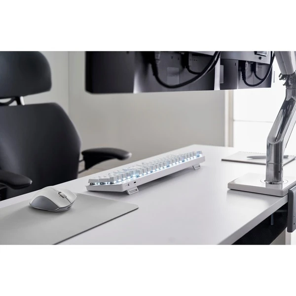 Razer hat sich Humanscale zusammengetan, dem Weltmarktführer im Bereich Ergonomie im Büro, um eine Maus zu entwickeln, deren Design auf den neusten Erkenntnissen bei der Erforschung menschlicher Ergonomie basiert. Dabei herausgekommen ist die Razer Pro Click, die Ergonomie und Präzision auf höchstem Niveau bietet — für beste Produktivität und eine völlig neue Art zu arbeiten. Die Handballenauflage sorgt dafür, dass das Handgelenk nicht auf harten Oberflächen liegen muss, sodass es weniger belastet wird und man den Arm bequemer halten kann. Power User können jetzt noch schneller und smarter arbeiten, indem sie Makros und Sekundärfunktionen den 8 unabhängig voneinander programmierbaren Tasten zuweisen. Die mechanischen Switches der Razer Pro Click verbinden Performance mit Langlebigkeit und halten bis zu 50 Millionen Klicks durch. Der moderne optische 5G-Sensor mit seinen 16.000 DPI ermöglicht, dass selbst die kleinsten Bewegungen der Maus erkannt werden. Der Akku hält per Bluetooth bis zu 400 Stunden durch, kabellos per 2,4-GHz-Verbindung bis zu 200 Stunden, damit es ruhig auch mal später werden kann. Dank Mehrfach-Konnektivität kann man bis zu 4 Geräte verbinden und praktischerweise mit nur einem Klick zwischen Desktop, Laptop, Android-Tablet oder TV umschalten, ohne ständig Geräte neu zu verbinden.Art.-Nr.: 1669477