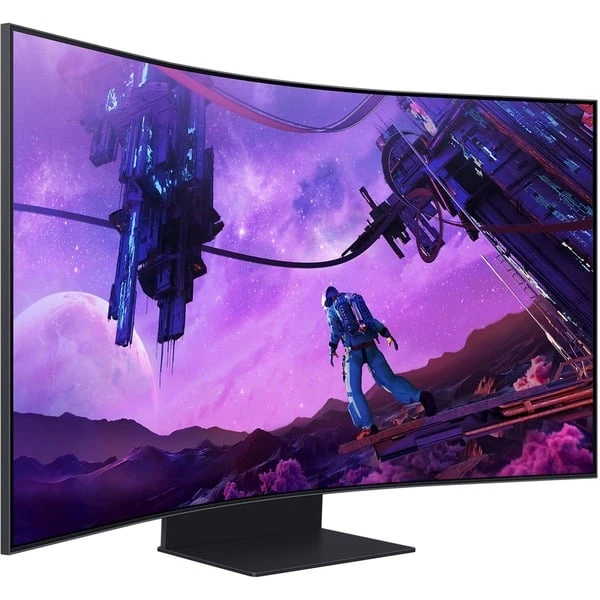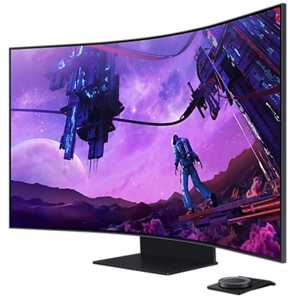 Schluss mit mehreren Monitoren auf dem Schreibtisch: Der Samsung Odyssey Ark bietet auf seiner Bilddiagonale von 139 cm (55″) mit Multi View eine Funktion, bei der man das Display in 4 Bildschirme teilen kann. Per Flex Move kann das Bild einfach angepasst werden, sodass es im 16:9 oder z.B. 21:9 Format angezeigt wird. Über das Ark Dial kann eine Reihe von Funktionen während dem laufenden Spiel aktiviert werden. Der Odyssey Ark verfügt über einen Cockpit Modus und die Eclipse Lighting Beleuchtung, die sich an den Inhalt des Bildschirms anpasst. Der Odyssey Ark stellt dank Neural Quantum Prozessor Ultra und HDR jedes Detail genau da – die AI übernimmt dabei Pixel für Pixel. Und damit der Sound nicht zu kurz kommt, ist der Odyssey Ark mit einem 60 Watt Soundsystem ausgestattet, welches den Nutzer dreidimensional mitten ins Spielgeschehen bringt.Art.-Nr.: 1858643