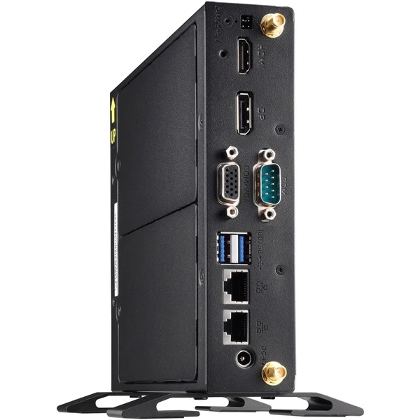 Der Shuttle POS DS200 ist ein schlanker, lüfterloser Mini-PC in einem robusten 1,3-Liter-Metallgehäuse mit universellen Anschlussmöglichkeiten. Der aufgelötete Intel® Celeron® 5205U Prozessor bietet genügend Performance für die Wiedergabe von 2160p/60-Videos in 4K-Auflösung. Zwei digitale Anschlüsse für UHD-Displays und ein traditioneller VGA-Port sind vorhanden. Ausgestattet ist der POS DS200 mit 4 GB DDR4-Arbeitsspeicher und einer 128 GB großen M.2-PCIe-SSD. Weitere Komponenten lassen sich zudem einfach installieren. Dank komplett passiver Kühlung ist das System praktisch wartungsfrei, für den 24/7-Dauerbetrieb geeignet und außerdem sehr sparsam. Es ist ideal einsetzbar für professionelle Anwendungen wie Digital Signage, POS, Steuerung, Office oder als Media-PC.Art.-Nr.: 100005360