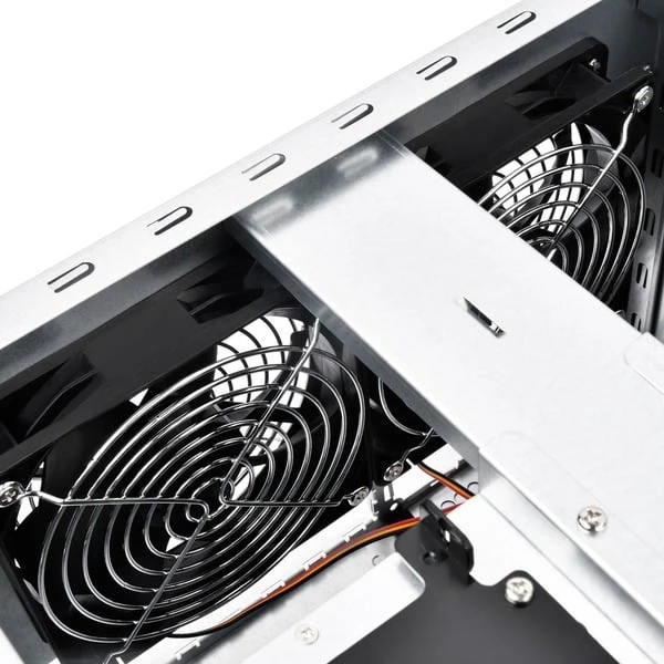 | Rückseite | 2 x 120-mm Dual Ball Baering Lüfter vorhanden (1300 U/Min., 28dBA) | ||