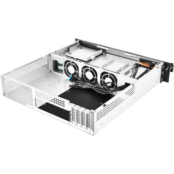Das schwarze SilverStone RM21-308 ist eine Mehrzweck-Server-/Workstation-Plattform mit flexiblen Konfigurationsmöglichkeiten. Das Gehäuse bietet Backplane-Unterstützung für 8-Port-SAS / SATA-Laufwerke und 6-Gbit / s-Mini-SAS SFF-8087 und Einbaumöglichkeiten für acht 2,5 „/ 3,5″ SAS / SATA-Festplatten / SSDs und zwei 2,5“ HDD/SSDs. Das Server-Gehäuse ist mit drei PWM-Lüftern ausgestattet (80 x 15 mm). Es werden Mainboards bis Micro ATX-Standard unterstützt und vier Low-Profile-PCI / PCIe-Steckplätze. Der Auto-Lock-Griff sorgt für die einfache 2U-Rack-Montage im Netzwerkschrank.Art.-Nr.: 1566317