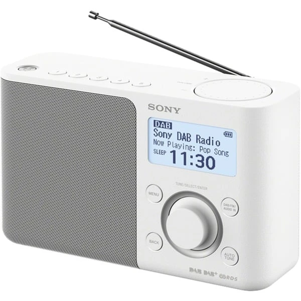 Das XDR-S61DW von Sony ist ein kompaktes und portables DAB+/UKW-Radio mit eingebautem LC-Display. Für DAB+ und UKW stehen je fünf Senderspeicher mit Schnellwahl-Taste zur Verfügung auf welchen favorisierte Sender abgelegt werden können um sie schnell einzuschalten. Das helle LC-Display zeigt neben der Uhrzeit auch den Radiosender sowie den Titel an – praktisch wenn man das Lied noch nicht kennt aber nochmals hören möchte. Dank der Abschaltautomatik und Wecker-Funktion kann das XDR-S61DW genau so eingestellt werden wie man es am Tag benötigt. Neben dem Netzbetrieb reichen vier AA-Batterien aus um das Radio bis zu 17 Stunden lang nutzen zu können. Mithilfe des Audioeingangs kann man die laufende Musik schnell mit allen Teilen, oder aber auch dank des Kopfhörer-Anschlusses nur für sich privat hören.Art.-Nr.: 1450666
