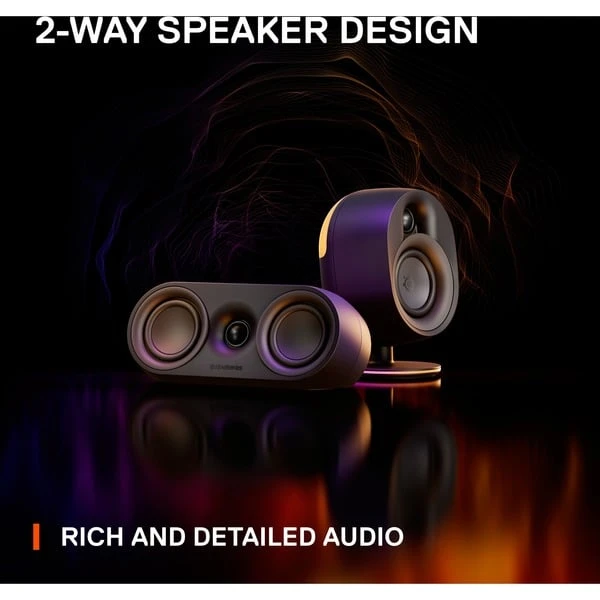 Das SteelSeries Arena 9 Lautsprechersystem maximiert den Sound und liefert eine Immersion, der jeden Gaming-Moment noch realer wirken lässt. Pro Lautsprecher verrichtet ein 4″ großer Soundtreiber (6.5″ Subwoofer Treiber) sein Werk und lässt dabei auch feine Nuancen zur Geltung kommen. Um die Installation so einfach wie möglich zu machen, lässt sich das Arena 9 einfach per USB mit dem Computer verbinden – die Lautsprecher fungieren dabei kabellos. Endgeräte können einfach per 3,5 mm Klinke, optischem Kabel oder alternativ über Bluetooth verbunden werden, außerdem liefert das Arena 9 mit ihrer PrimSync RGB Beleuchtung auch eine ideale Lösung für ein rundum optimiertes Gaming-Erlebnis, dass mittels Sonar Audio Software individualisiert und angepasst werden kann.Art.-Nr.: 1842159