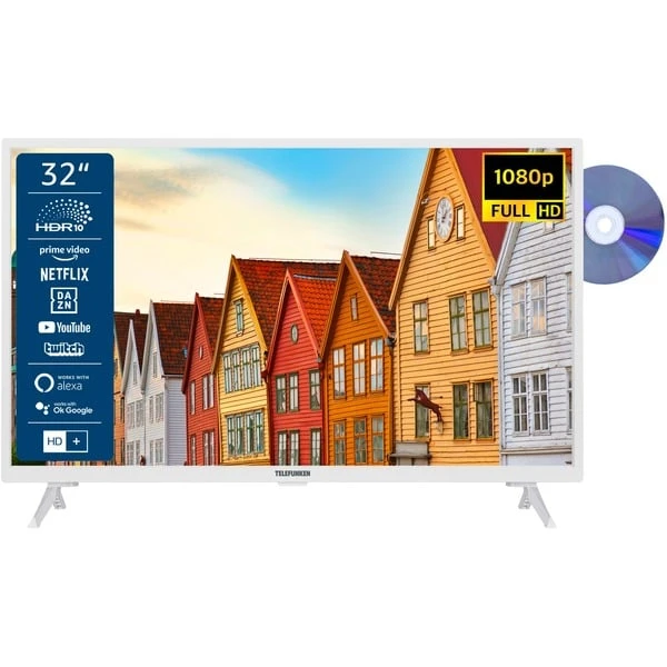 Der Telefunken XF32SN550SD-W ist ein smarter LED-Fernseher mit 80 cm (32″) Bilddiagonale und brillanter WXGA Auflösung (1.920 x 1.080 Pixel) sowie einem integrierten DVD-Player. Durch seine kompakte Form kann er fast überall aufgestellt werden und empfängt dabei dank Triple Tuner sämtliche Signale über Satellit, Kabel und per terrestrischer Antenne – dank optionalem CI+ Modul auch Pay-TV Programme. Der Telefunken XF32SN550SD-W unterstützt die HDR (+ HDR10 & HLG)-Technologie und liefert damit eindrucksvolle Farben mit herausragenden Kontrasten. Fotos, Videos oder auch Musik die selbst aufgenommen wurde kann schnell und unkompliziert über den USB Mediaplayer abgespielt werden, dabei werden jegliche Sounds von den 12 Watt starken Lautsprechern mit Dolby Digital Plus authentisch wiedergegeben. Als SmartTV hat man außerdem Zugriff auf die smarten Assistenten wie Alexa oder Google Assistant und kann auf zahlreiche SmartTV Apps und -Dienste zugreifen.Art.-Nr.: 1913765