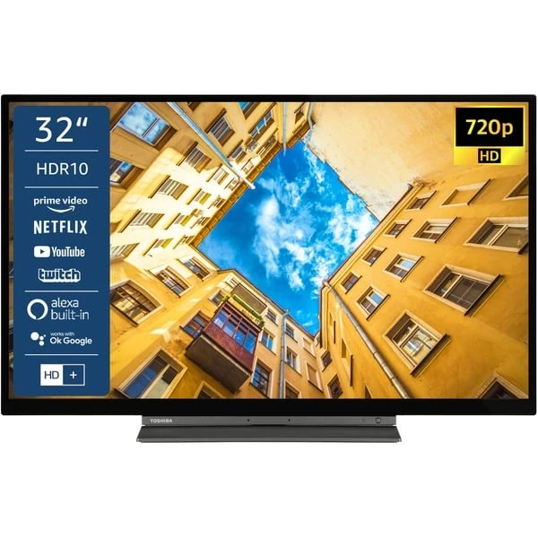 Der Toshiba 32WK3C63DAY bietet nahezu unbegrenztes Entertainment, denn neben dem Empfang von Fernseh- oder Radiosignalen kann man mit den zahlreichen SmartTV Funktionen auf verschiedene Portale und Dienste zurückgreifen. Das 80 cm (32″) große Panel stellt realistische sowie faszinierende Farben dar und löst mit WXGA (1.366 x 768 Pixel) auf – so ist es für hochauflösende Inhalte gerüstet und erzeugt ein detailliertes Bild mit tollen Farben und mehr Schärfe. Weiterhin steht ein Triple Tuner zur Verfügung, um Satelliten-, Kabel- oder terrestrische Signale zu Empfangen und zu Verarbeiten – dank automatischer Sendersuche und zahlreichen Möglichkeiten zur Personalisierung schnell und unkompliziert. Darüber hinaus kann der 32WK3C63DAY als SmartTV auf zahlreiche Online-Funktionen zugreifen, die das übliche TV-Erlebnis erweitern. Ob Streaming-Dienste, Mediatheken unterschiedlicher Anbieter oder Anwendungen und Suchfunktionen über das Internet, hier ist für jeden Geschmack etwas dabei. Zusätzliche Lautsprecher sind nicht erforderlich, die bringt der 32WK3C63DAY gleich mit: Die 12 Watt starken Stereo Lautsprecher mit Dolby Audio machen jeden Inhalt noch mitreißender und authentischer.Art.-Nr.: 1839711