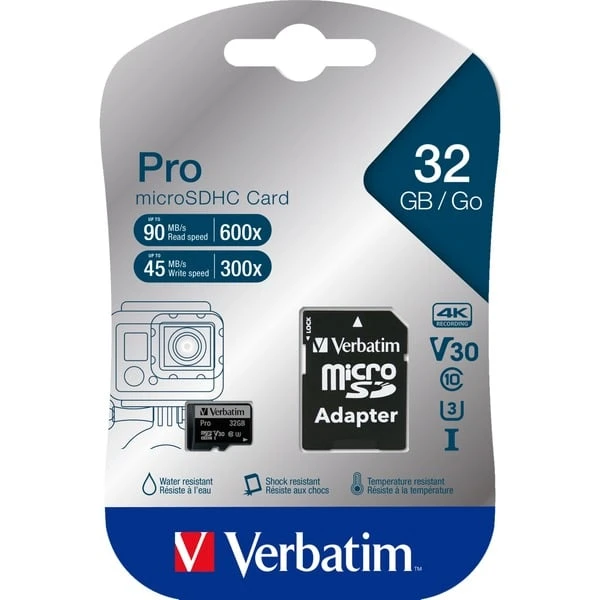 Die Verbatim Pro 32GB microSDHC Speicherkarte hat eine nochmals gesteigerte Datendichte gegenüber der microSD Speicherkarte. Dadurch können höhere Kapazitäten erreicht werden. Sie gehört wie die microSD Speicherkarte zu den weltweit kleinsten austauschbaren Flash-Speichermedien und wurde speziell für Multimedia-Mobiltelefone und Tablets entwickelt. Über den beiliegenden Adapter lässt sich die 32 GB fassende und besonders kleine microSDHC auch in SDHC-kompatiblen Geräten nutzen.Art.-Nr.: 1218919