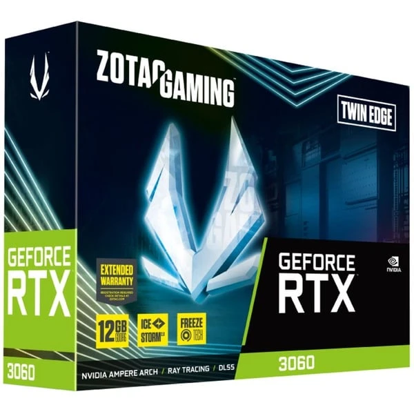 Die ZOTAC GeForce RTX 3060 TWIN EDGE ist eine High-End-Grafikkarte mit der GeForce RTX 3060 GPU von NVIDIA. Die leistungsfähigen GeForce RTX 30-Grafikkartenserie basiert auf der NVIDIA Ampere Architektur und bietet neue Stufen von Gaming Realismus, Geschwindigkeit und Leistungseffizienz und realistische VR-Erlebnisse. Weitere Features sind Real-Time Ray Tracing, NVIDIA Ansel, mit umfangreichen Werkzeugen zur Erstellung von Screenshots in Spielen sowie NVIDIA G-SYNC, G-SYNC HDR, DirectX 12 Ultimate, NVIDIA DLSS, PCI Express Gen 4, NVIDIA FreeStyle, NVIDIA ShadowPlay, NVIDIA Highlights, Vulkan RT API und OpenGL 4.6. Die auf der ZOTAC GeForce RTX 3060 TWIN EDGE verbaute GPU verfügt über 3584 Shadereinheiten. Der 12 Gbyte große GDDR6-Speicher verfügt über einen 192-Bit-Speicherkontroller mit einer Bandbreite von 360 GB/Sek angebunden.Art.-Nr.: 1715295